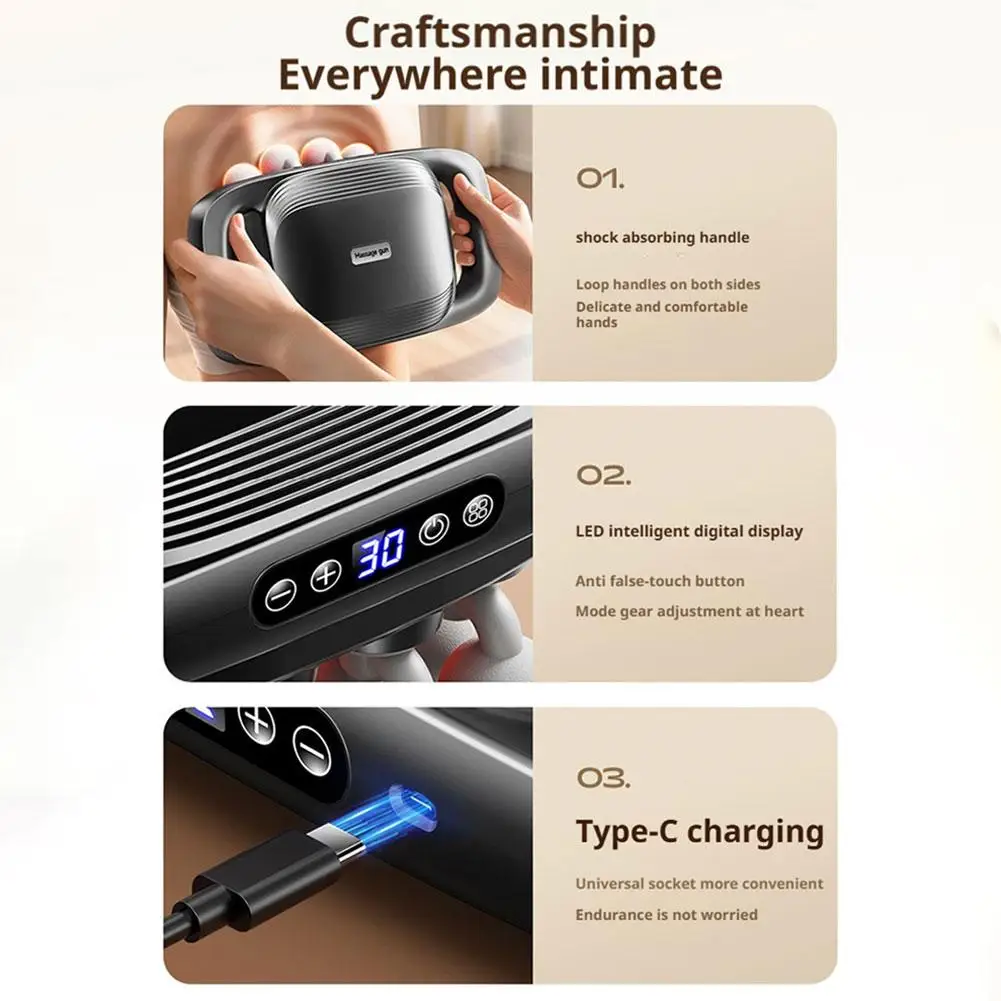 1. Multi-head fascia gun design, equipped with multiple massage heads, precisely targeting different muscle groups for deep relaxation and knot relief.